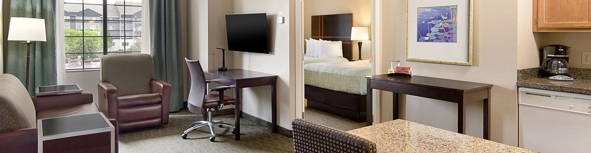 In our suites, you’ll enjoy inviting, modern décor, free Wi-Fi access, and upscale bedding and bath amenities. Choose from a wide variety of suite layouts and sizes. Our Studio suite is ideal for business travelers or couples looking for incredibly comfortable accommodations. Our one-bedroom and two-bedroom suites provide a bit of extra space for larger families visiting Rochester, MN.